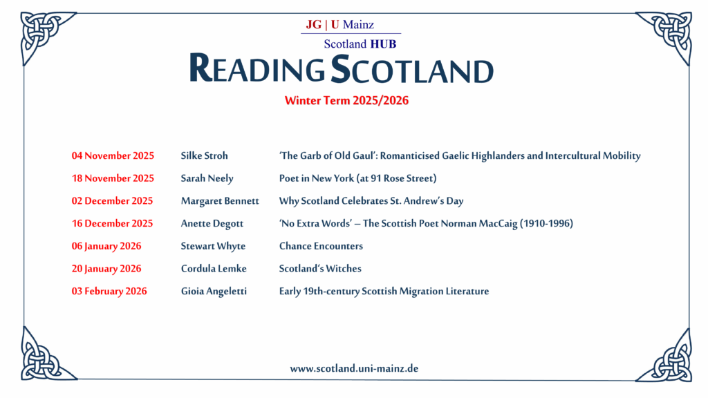 Scotland Hub’s ‘Reading Scotland’ is a virtual community bringing together Germans and Scots and all who have an interest in Scottish life and literature.